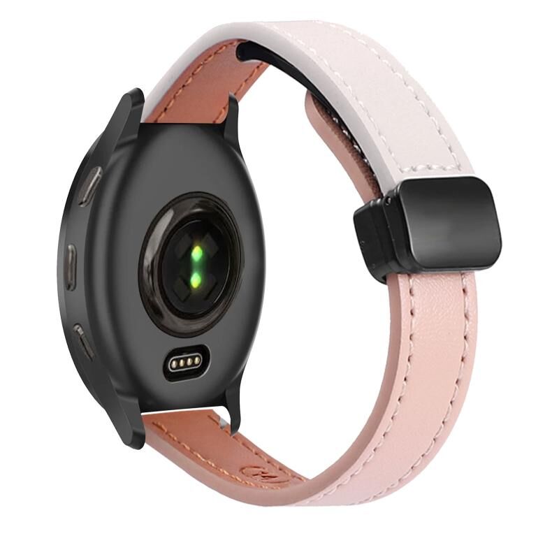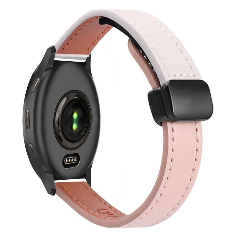 Για Garmin Venu 2 Plus Λεπτή μαγνητική αγκράφα 20 χιλιοστών δερμάτινη ζώνη ρολογιού μικροϊνών (ροζ+απρίκο)