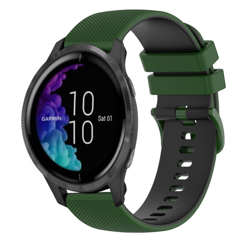 For Garmin Venu 20mm Checkered Two-Color Silicone Watch Band(Amy Green+Black)