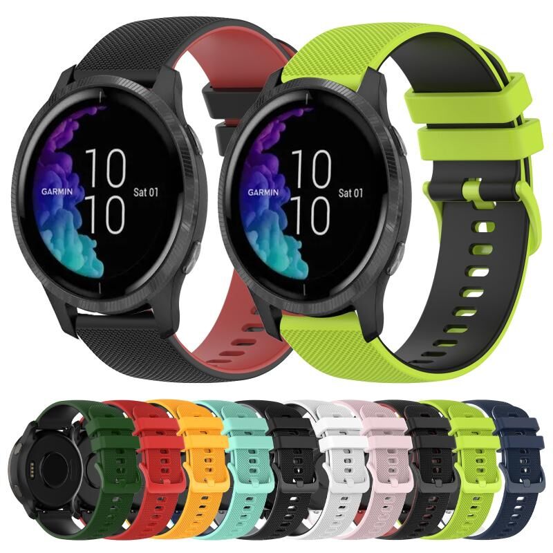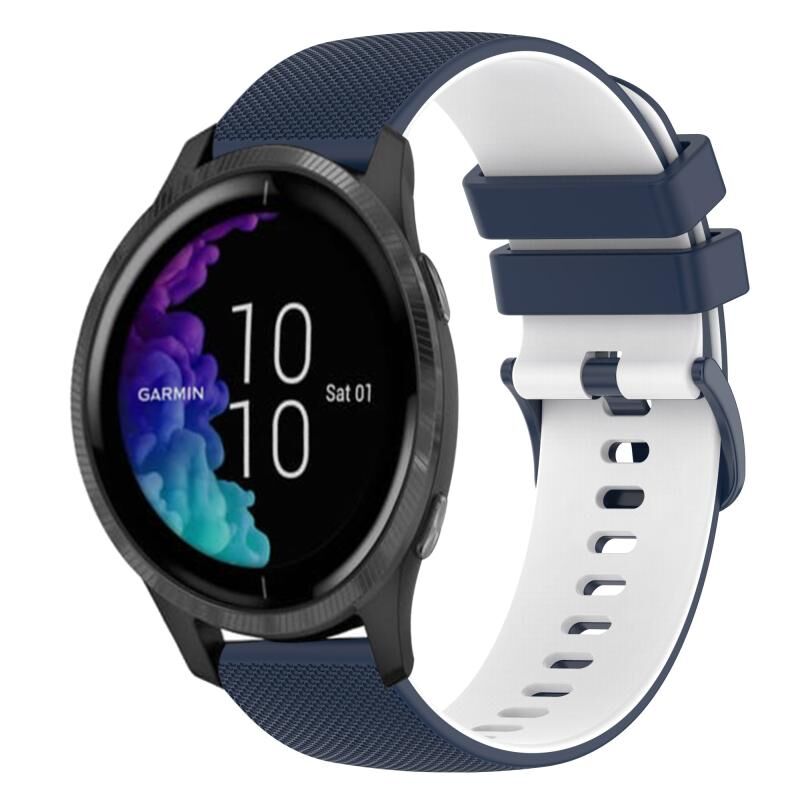 For Garmin Venu 20mm Checkered Two-Color Silicone Watch Band(Dark Blue+White)