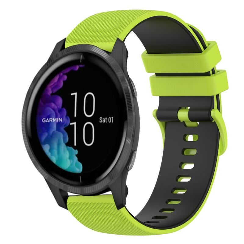 For Garmin Venu 20mm Checkered Two-Color Silicone Watch Band(Lime Green+Black)