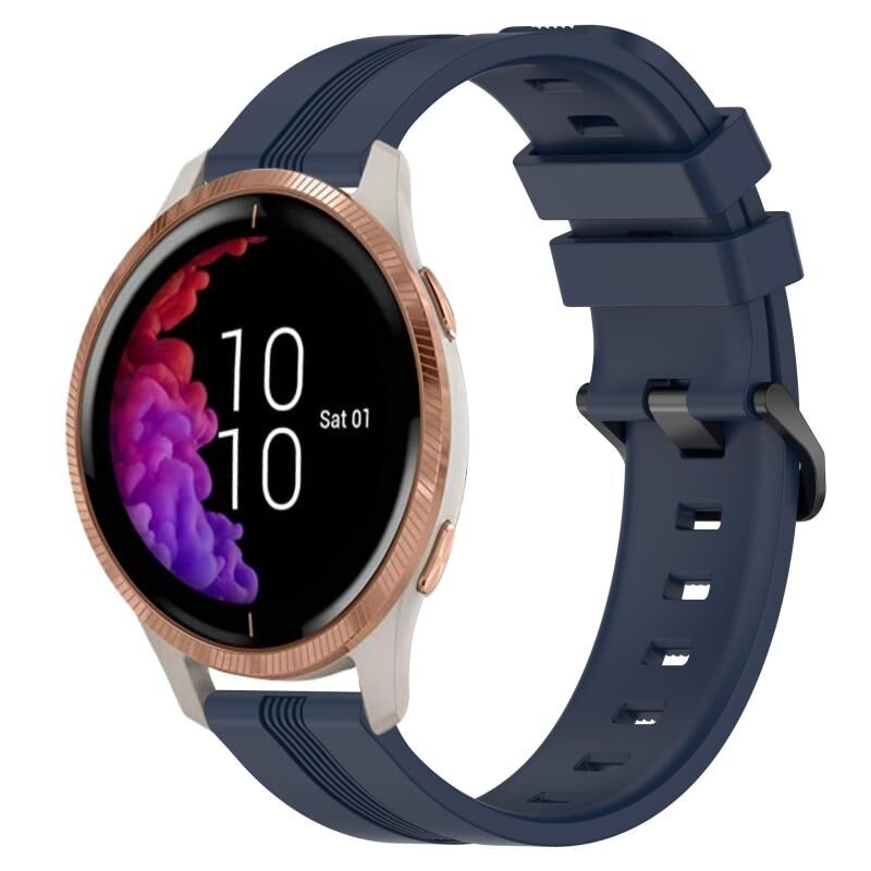 Για το Garmin Venu 20mm Concave Striped Slicone Watch Band (Ναυτικό μπλε)