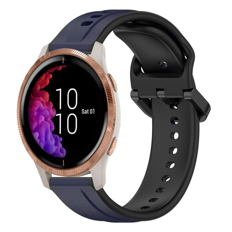 Για Garmin Venu 20mm κυρτό βρόχο σιλικόνης δύο χρωμάτων (Μπλε+Μαύρο μεσάνυχτα)