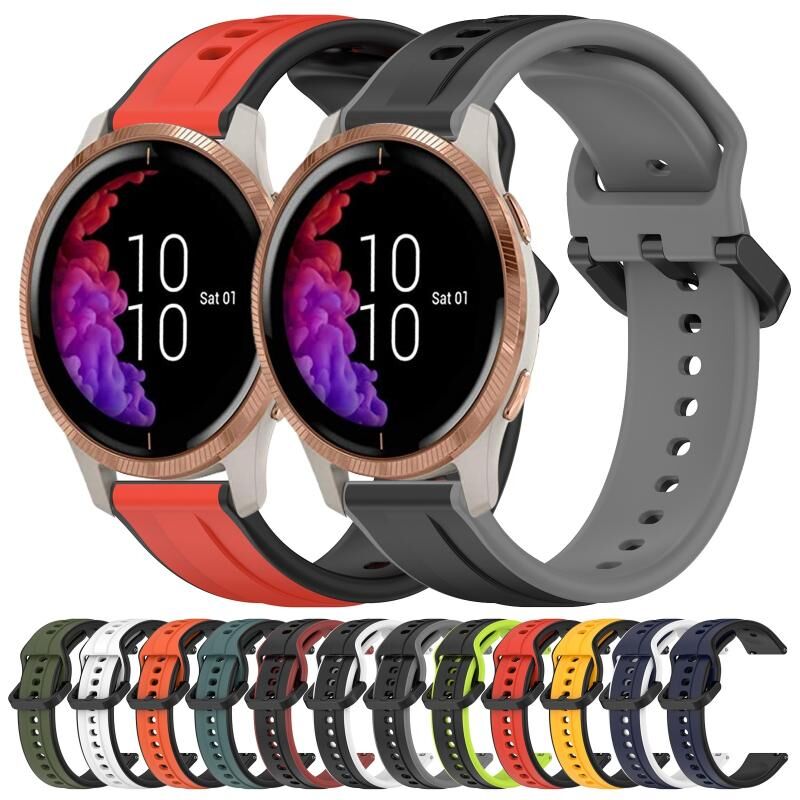 Για Garmin Venu 20mm κυρτό βρόχο σιλικόνης δύο χρωμάτων (πράσινο + μαύρο)