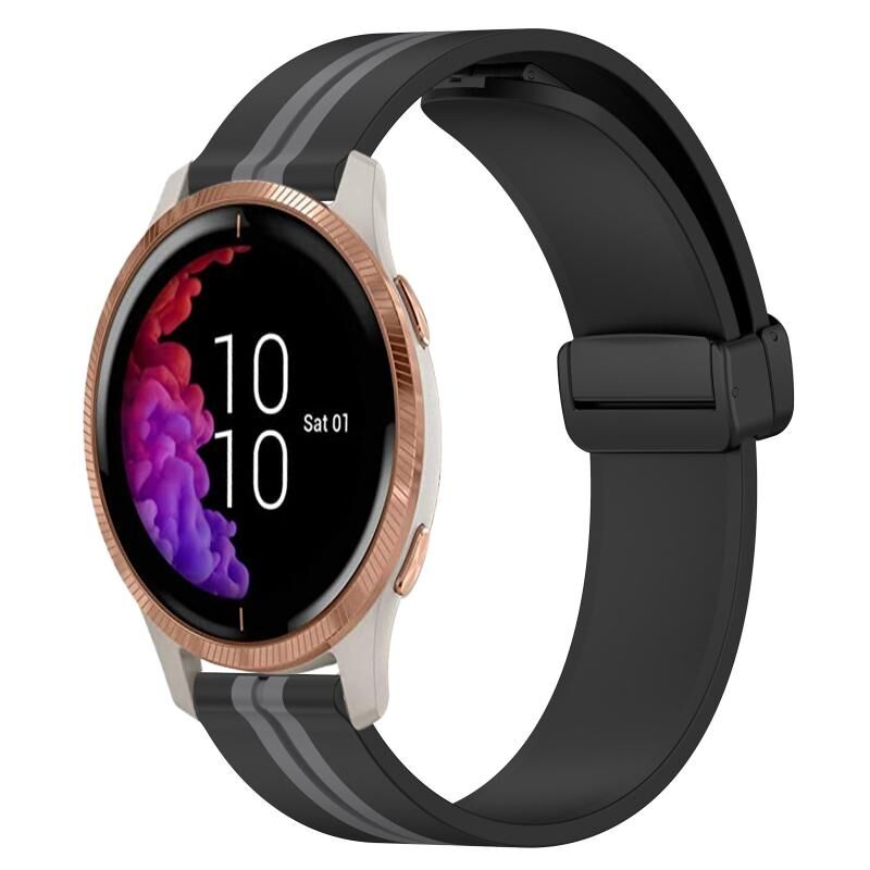 Για Garmin Venu 20mm Πτυσσόμενο μαγνητικό κούμπωμα σιλικόνης ρολόι μπάντα (μαύρο + γκρι)