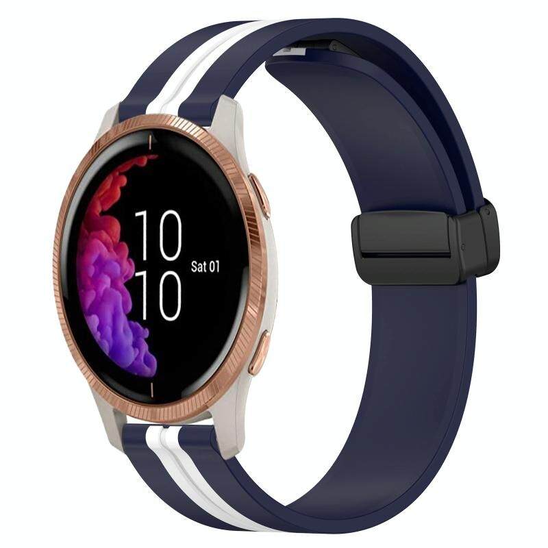 Για Garmin Venu 20mm Πτυσσόμενο μαγνητικό κούμπωμα σιλικόνης ρολόι μπάντα (Midnight Blue + Λευκό)