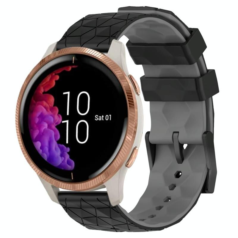 Για Garmin Venu 20mm ποδοσφαιρικό μοτίβο δύο χρωμάτων σιλικόνης ρολόι μπάντα ρολογιού (μαύρο + γκρι)