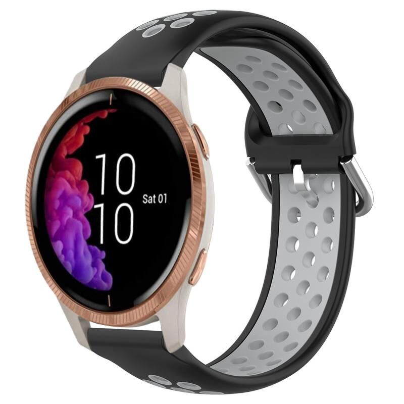 Για το Garmin Venu 20mm διάτρητο αναπνεύσιμο αθλητικό λουράκι σιλικόνης (μαύρο + γκρι)