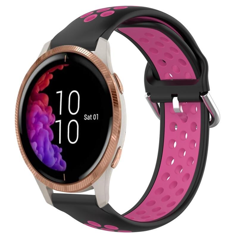 Για το Garmin Venu 20mm διάτρητη αναπνεύσιμη αθλητική ζώνη ρολογιού σιλικόνης (Μαύρο + Ροζ Κόκκινο)
