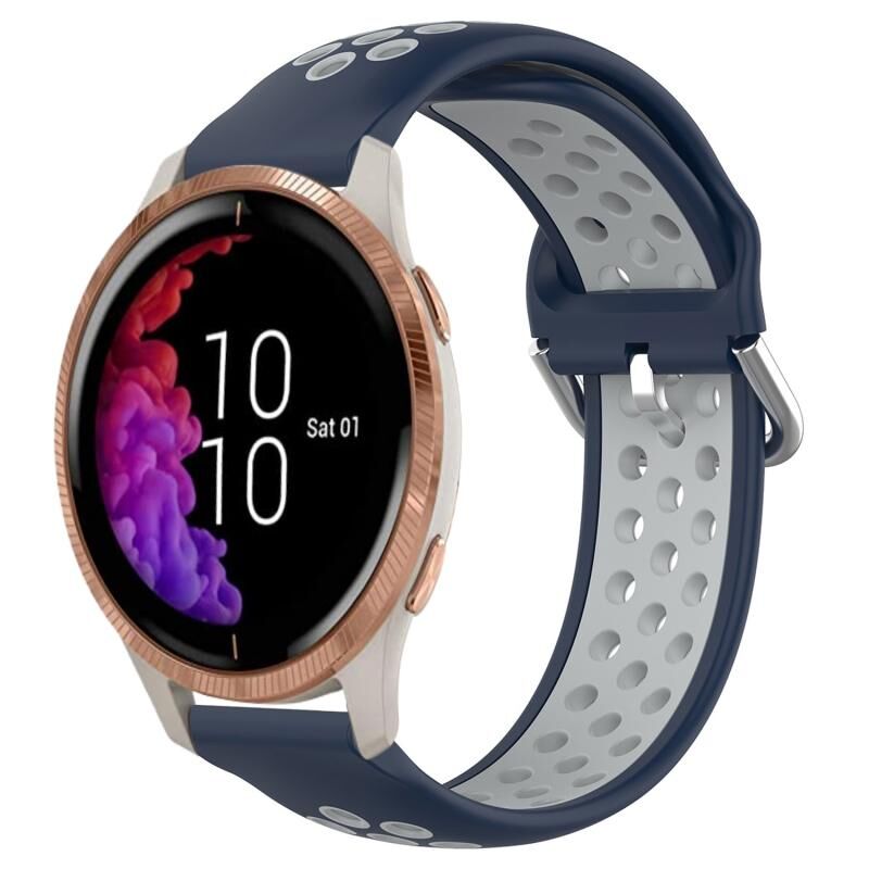 Για το Garmin Venu 20mm διάτρητη αναπνεύσιμη αθλητική ζώνη ρολογιού σιλικόνης (Μπλε μεσάνυχτα + γκρι)