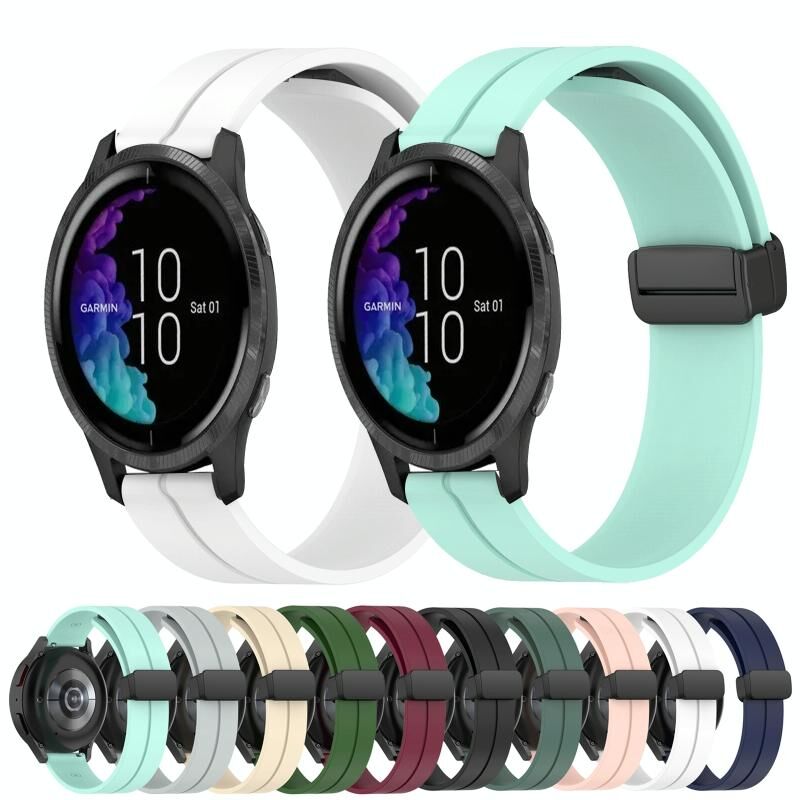 Για Garmin Venu 20mm στερεό χρώμα μαγνητικό κούμπωμα σιλικόνης ρολόι μπάντα ρολογιού (πράσινο ελαιόλαδο)