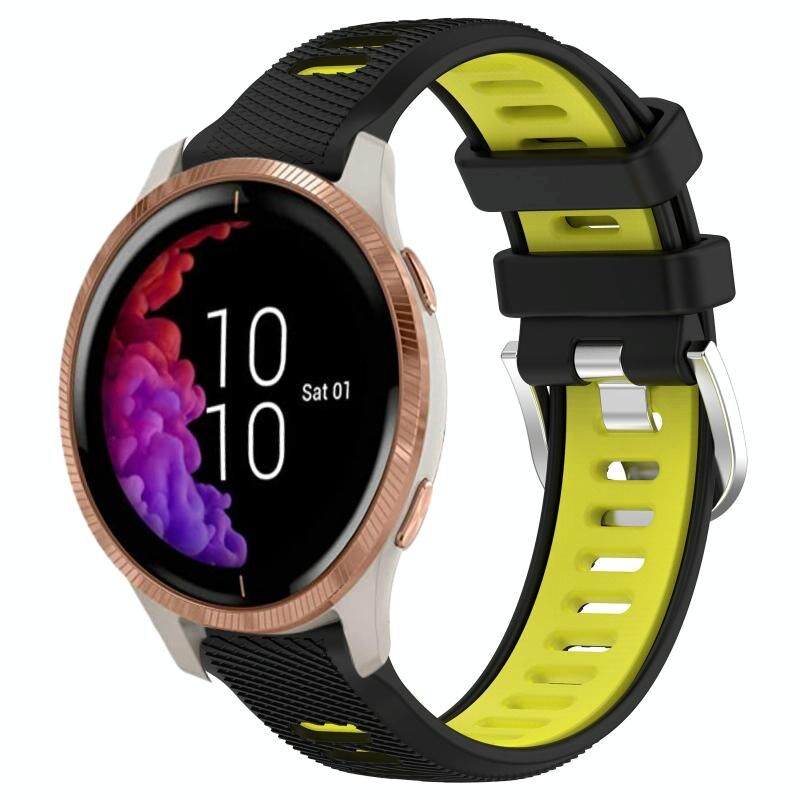 Για Garmin Venu 20mm Αθλητισμός Δύο χρωμάτων χάλυβα πόρπη σιλικόνης ρολόι μπάντα (μαύρο + πράσινο χρώμα)