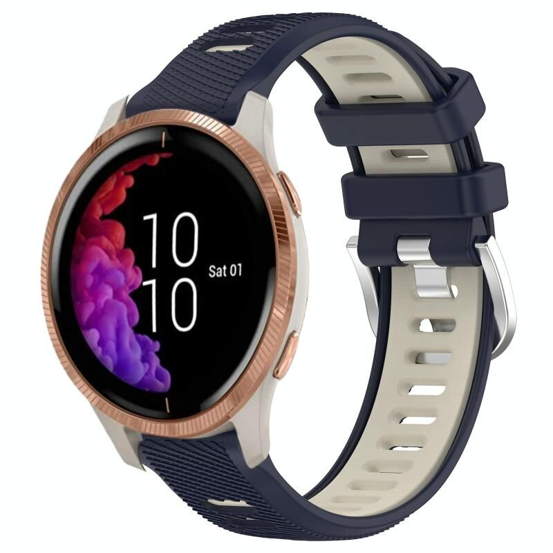 Για Garmin Venu 20mm Αθλητισμός Δύο χρωμάτων χάλυβα πόρπη σιλικόνης ρολόι μπάντα (Midnight Blue + Starlight)