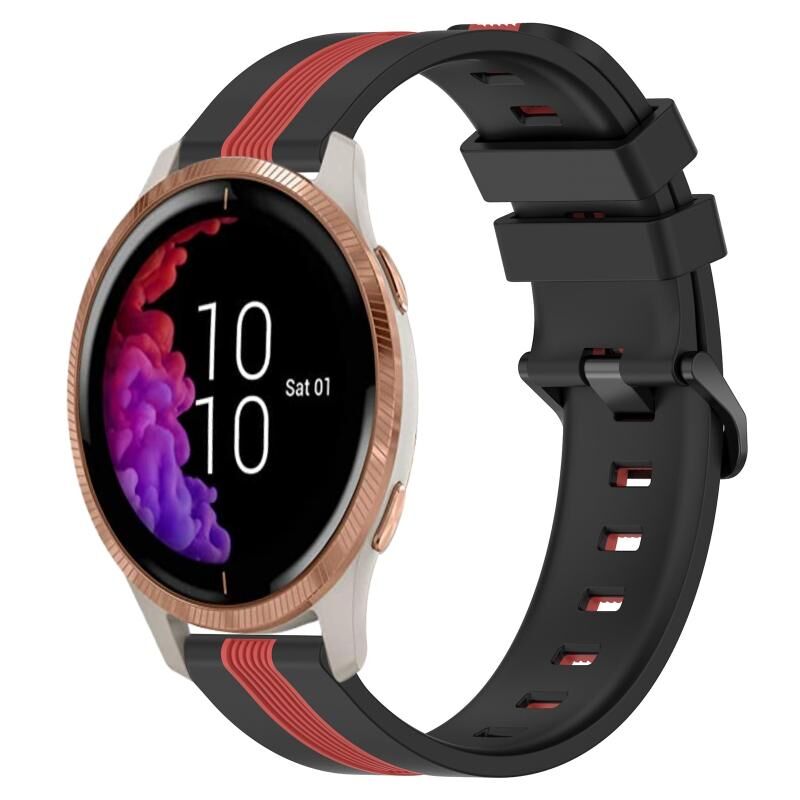 Για Garmin Venu 20mm κάθετη ζώνη ρολογιού σιλικόνης δύο χρωμάτων (μαύρο + κόκκινο)