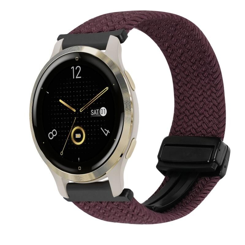 For Garmin Venu 2S 18mm Magnetic Buckle Braided Watch Band(Drop Cherry)