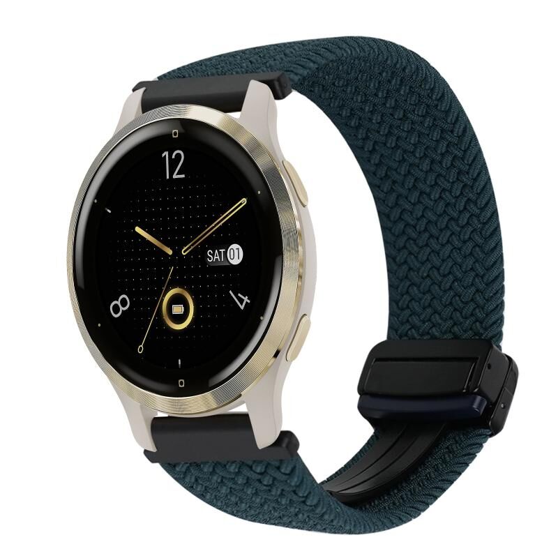 For Garmin Venu 2S 18mm Magnetic Buckle Braided Watch Band(Forest Green)