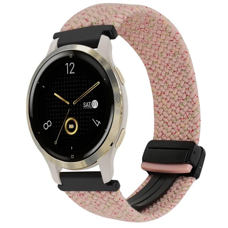 For Garmin Venu 2S 18mm Magnetic Buckle Braided Watch Band(Starlight Pink)