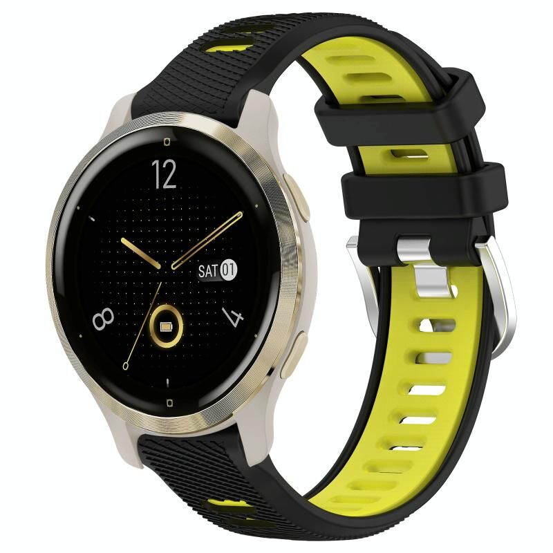 Για Garmin Venu 2S 18mm Αθλητισμός Δύο χρώματα χάλυβα πόρπη σιλικόνης ρολόι μπάντα (μαύρο + πράσινο χρώμα)