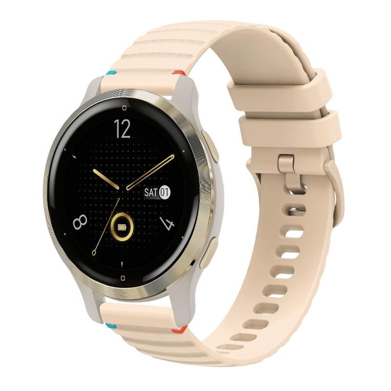 For Garmin Venu 2S Wavy Dotted Stitched 18mm Silicone Watch Band(Cream Coloured)