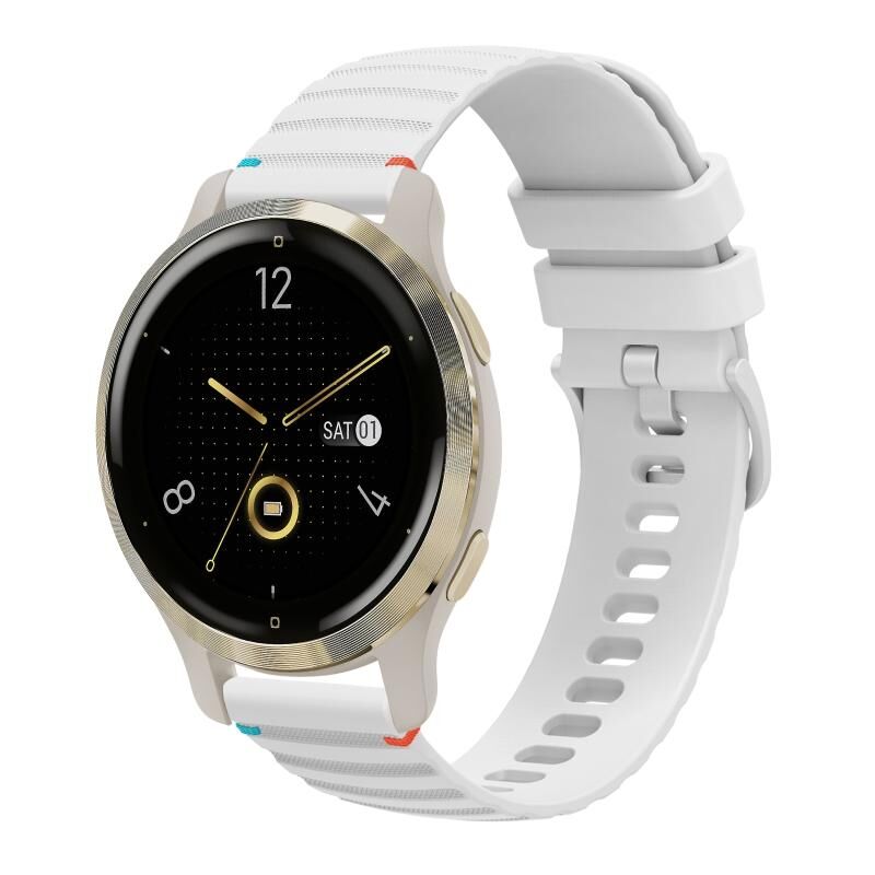 For Garmin Venu 2S Wavy Dotted Stitched 18mm Silicone Watch Band(White)