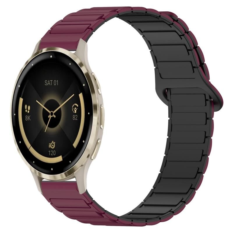 Για Garmin Venu 3S Διπλό χρώμα μαγνητική πόρπη 18mm σιλικόνης ρολόι μπάντα (κόκκινο κρασί + μαύρο)