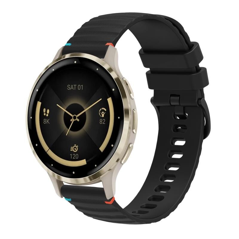 For Garmin Venu 3S Wavy Dotted Stitched 18mm Silicone Watch Band(Black)