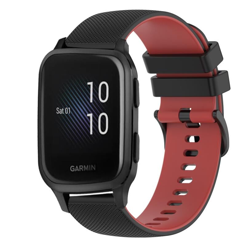 For Garmin Venu SQ 20mm Checkered Two-Color Silicone Watch Band(Black+Red)