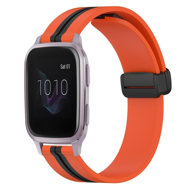 Για Garmin Venu SQ 20mm Πτυσσόμενο μαγνητικό κούμπωμα ζώνη ρολογιού σιλικόνης (πορτοκαλί+μαύρο)