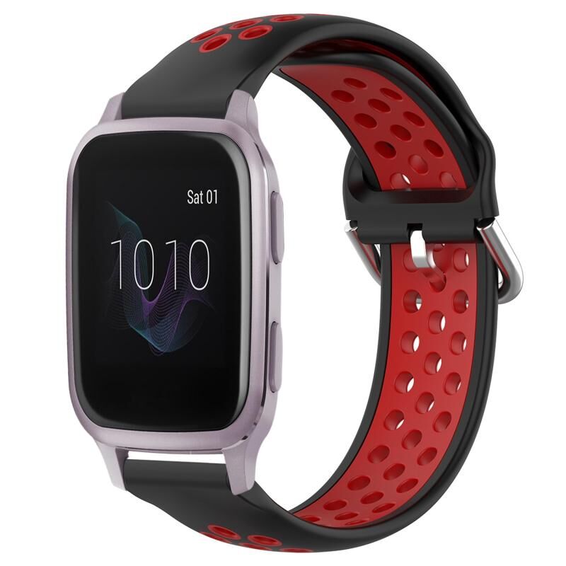 Για Garmin Venu SQ 20mm διάτρητο διαπνέον αθλητικό λουράκι σιλικόνης (μαύρο + κόκκινο)