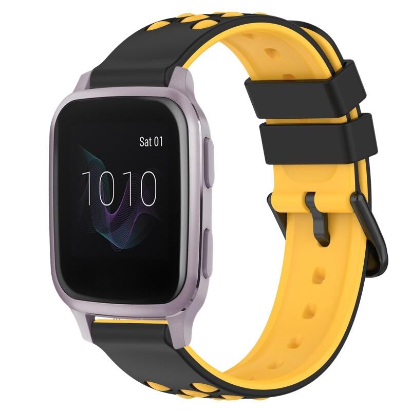 Για το Garmin Venu SQ 20 χιλιοστά δύο χρωμάτων πορώδες λουράκι σιλικόνης ρολόι (μαύρο + κίτρινο)