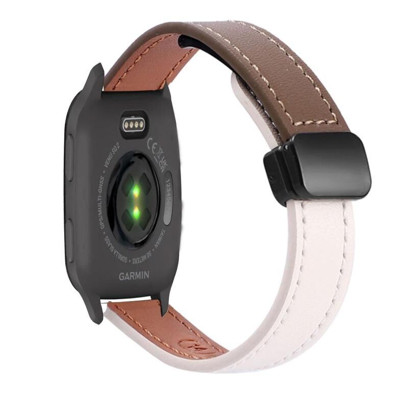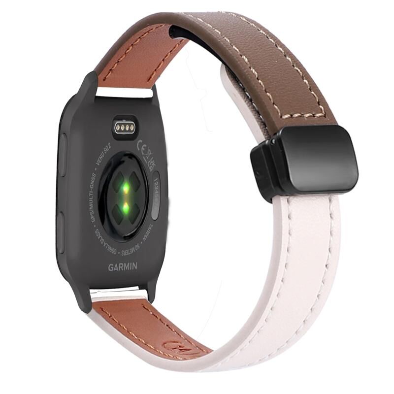 Για το Garmin Venu SQ Slim Μαγνητική Πόρπη 20mm Microfiber Leather Watch Band (Βερίκοκο+Caramel Macchiato)