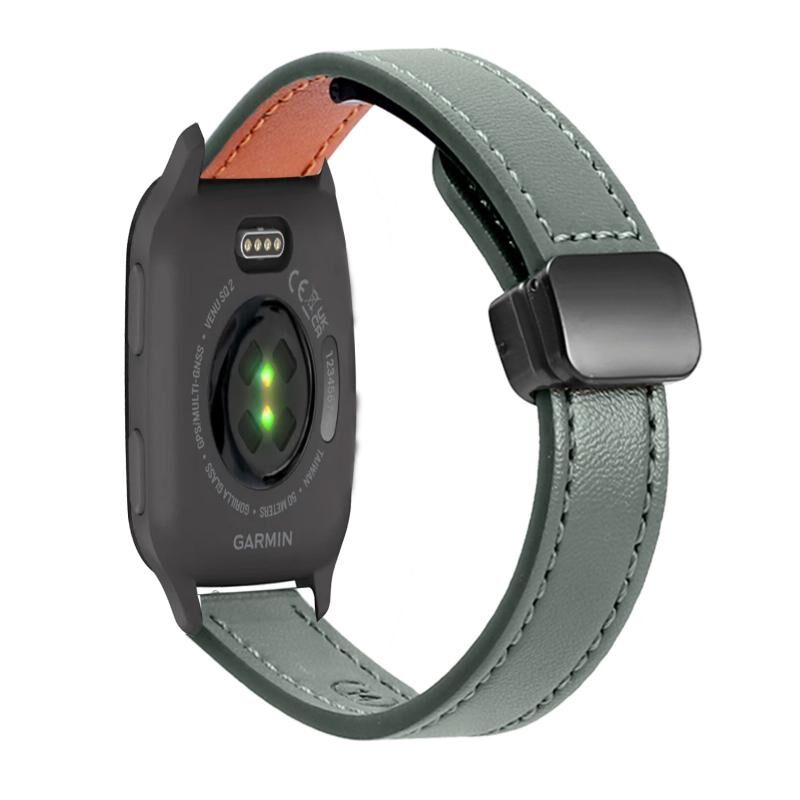 Για Garmin Venu SQ Slim μαγνητική πόρπη 20mm Microfiber Leather Watch Band (πράσινο αβοκάντο)