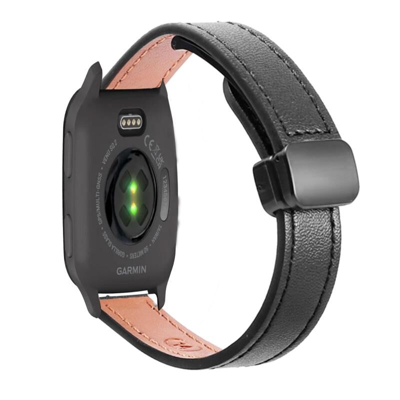 Για Garmin Venu SQ Slim μαγνητική πόρπη 20mm Microfiber Leather Watch Band (Μαύρο)