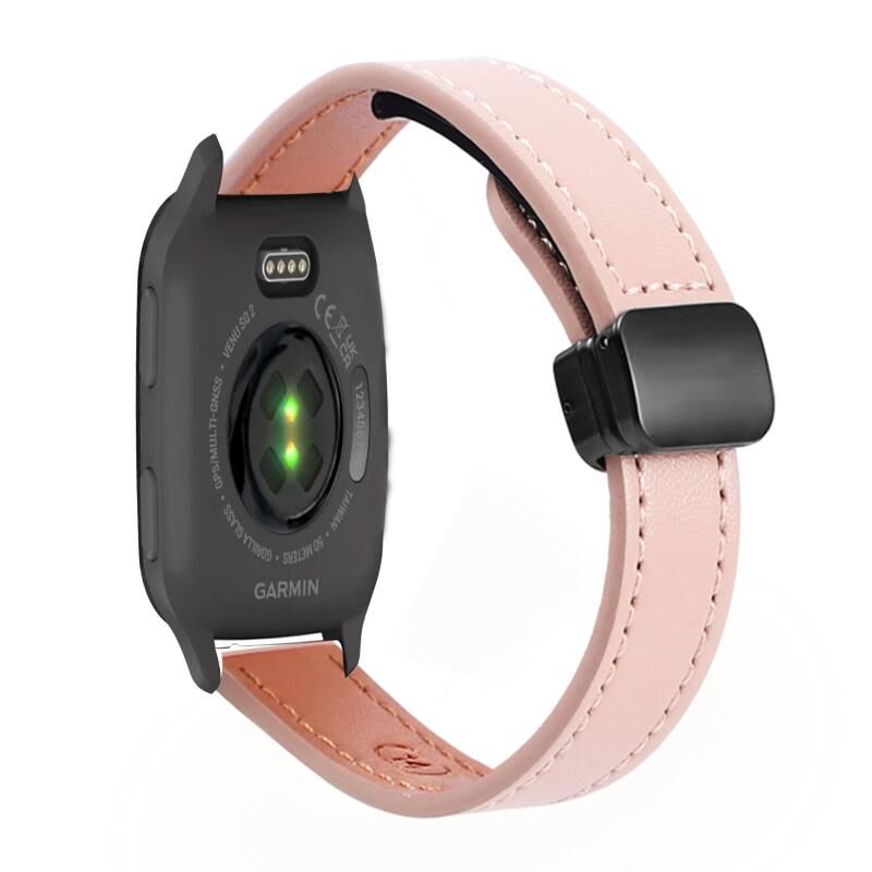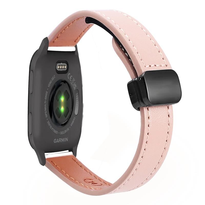 Για Garmin Venu SQ Slim μαγνητική πόρπη 20mm Microfiber Leather Watch Band (Sakura Pink)