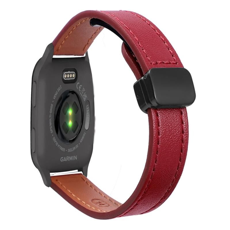 Για Garmin Venu SQ Slim μαγνητική πόρπη 20mm Microfiber Leather Watch Band (Wine Red)