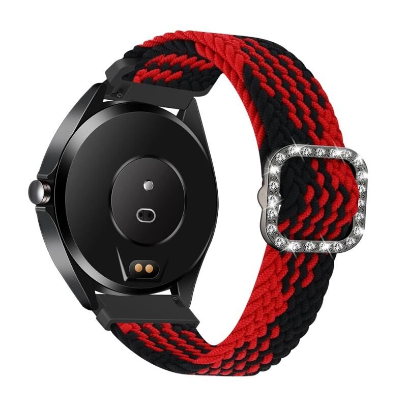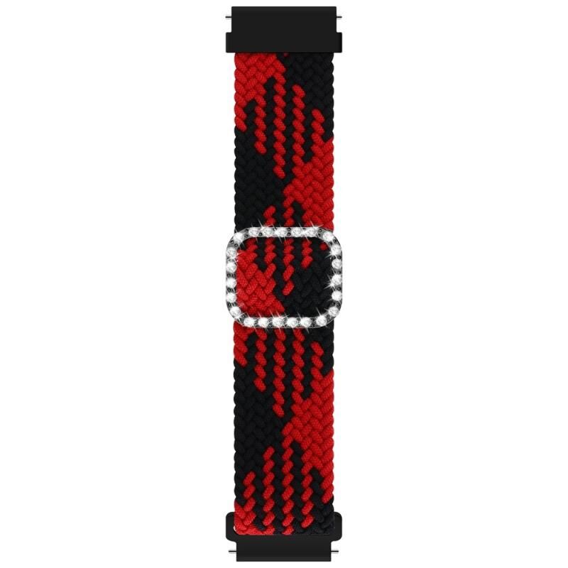 For Garmin Venu/Vivoactive 3 20mm Universal Adjustable Braided Elastic Diamond Buckle Watch Band(Red Black)