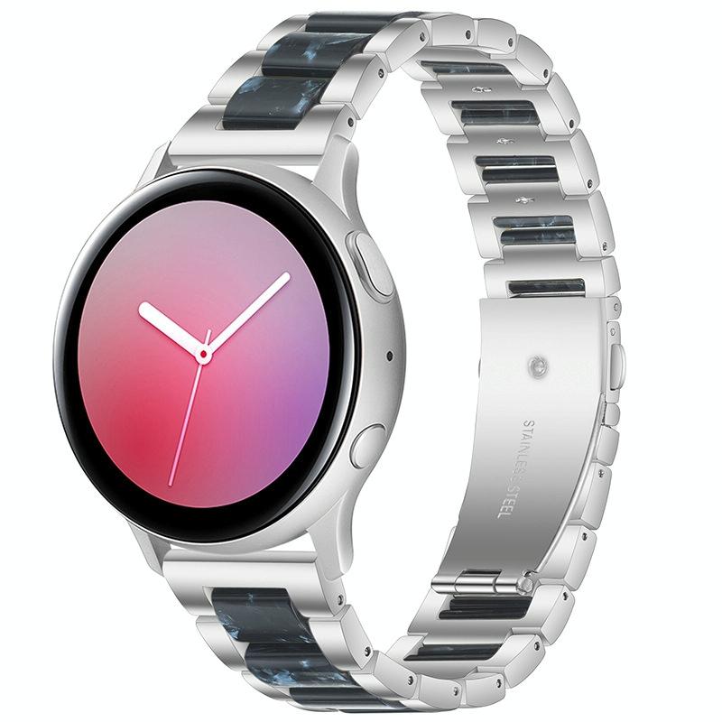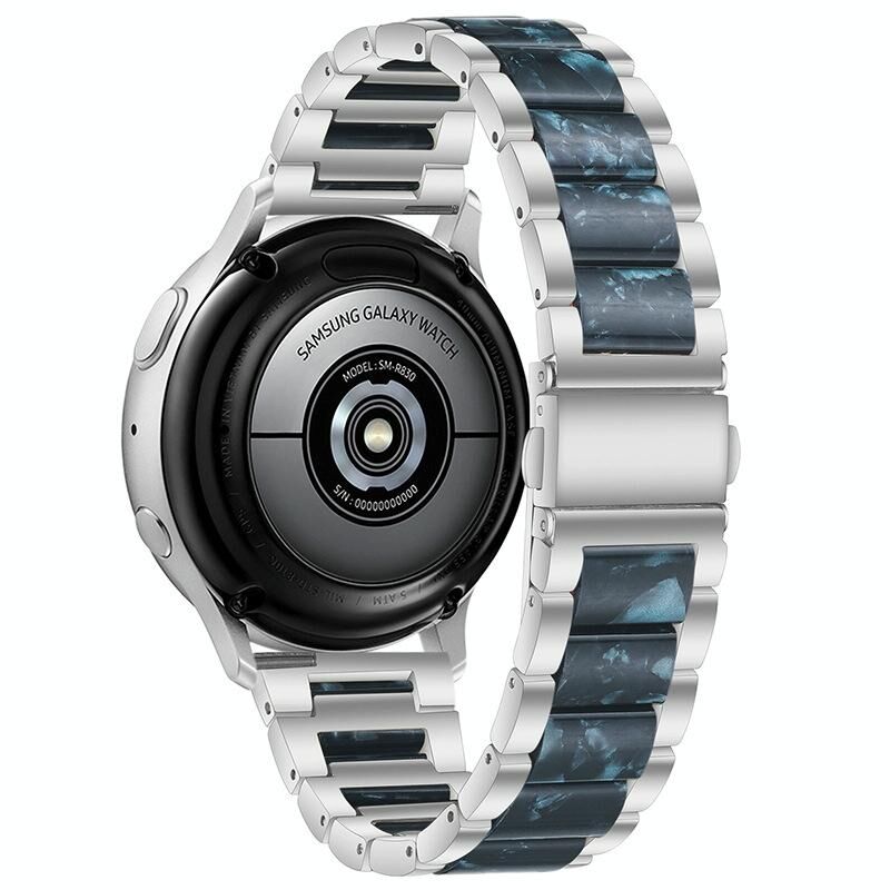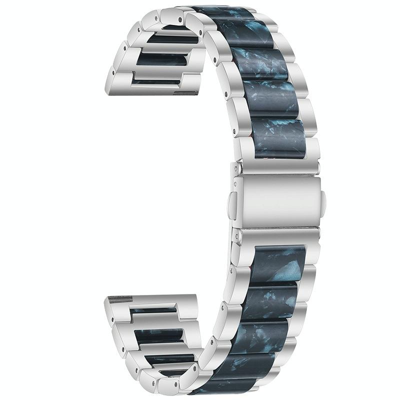 Για Garmin Venu/Vivoactive 3 Music 20mm Universal Τρίχρωμο Ανοξείδωτο Ατσάλι + Ρητίνη Λουράκι Ρολογιού (Ασημί+Πέρλα Λευκό)