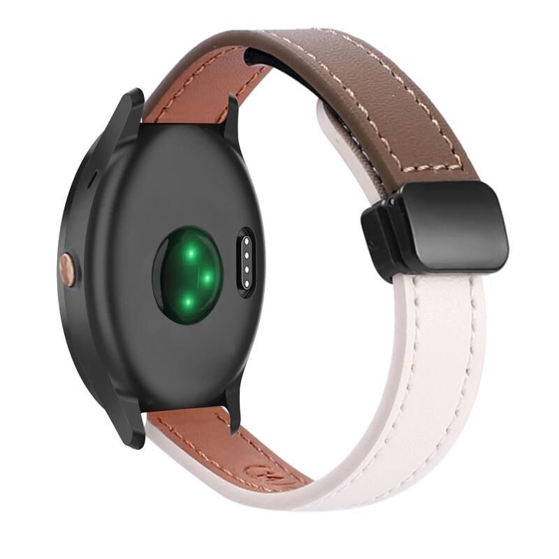 Για το Garmin Vivoactive 3 Music Slim Μαγνητική Πόρπη 20mm Microfiber Leather Watch Band (Βερίκοκο+Caramel Macchiato)