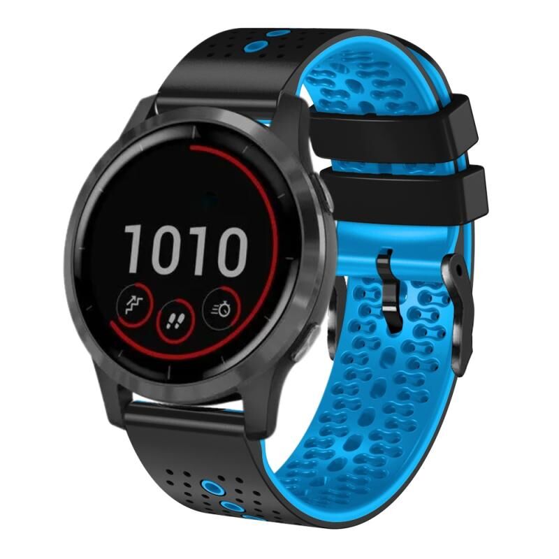 Για το Garmin vivoactive 4 22mm διάτρητη ζώνη ρολογιού σιλικόνης δύο χρωμάτων (Μαύρο+Μπλε)