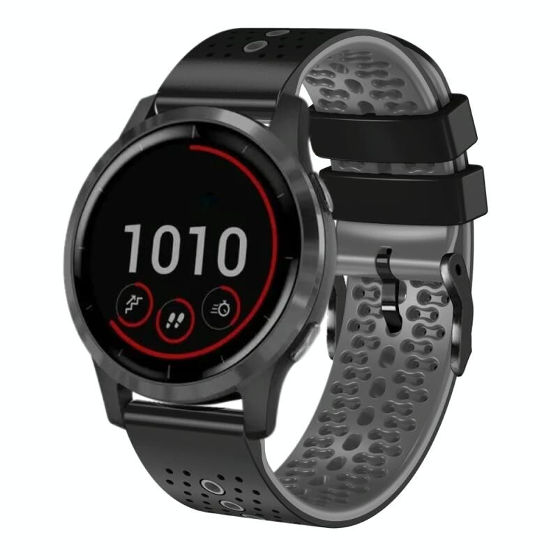 Για το Garmin vivoactive 4 22mm διάτρητη ζώνη ρολογιού σιλικόνης δύο χρωμάτων (μαύρο+γκρι)