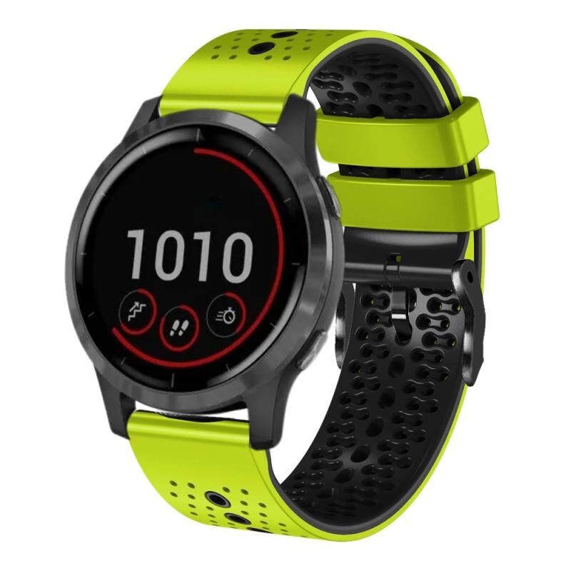 Για το Garmin vivoactive 4 22mm διάτρητη ζώνη ρολογιού σιλικόνης δύο χρωμάτων (Lime+Μαύρο)