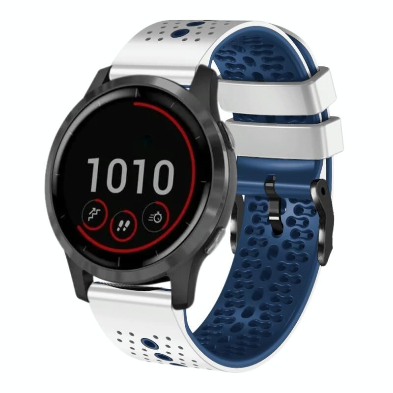 Για το Garmin vivoactive 4 22mm διάτρητη ζώνη ρολογιού σιλικόνης δύο χρωμάτων (Λευκό+Μπλε)