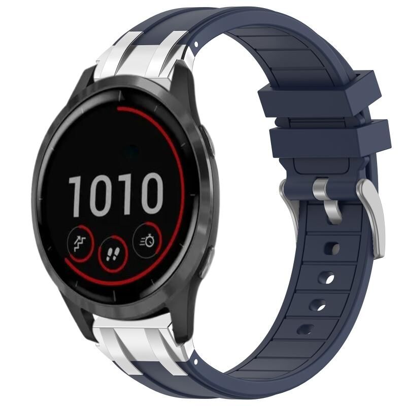 For Garmin Vivoactive 4 22mm Quick Release Silver Buckle Royal Silicone Watch Band(Navy Blue)