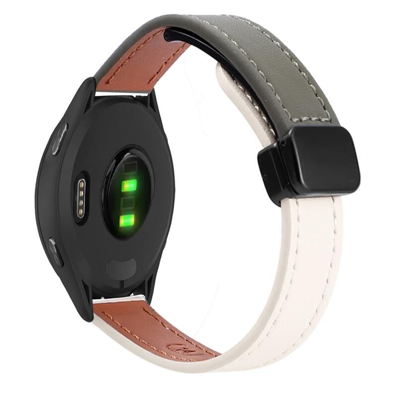For Garmin Vivoactive 4 22mm Slim Magnetic Buckle Microfiber Leather Watch Band(Apricot+Avocado Green)