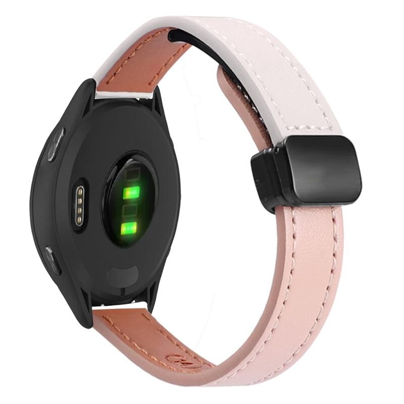 For Garmin Vivoactive 4 22mm Slim Magnetic Buckle Microfiber Leather Watch Band(Pink+Apricot)