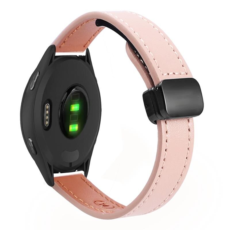 For Garmin Vivoactive 4 22mm Slim Magnetic Buckle Microfiber Leather Watch Band(Sakura Pink)