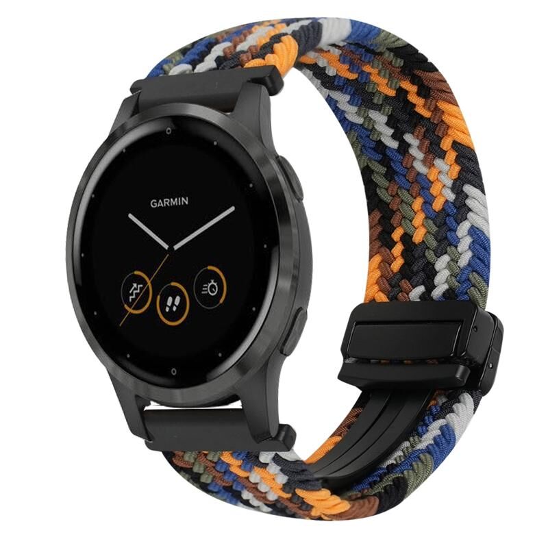 For Garmin Vivoactive 4S 18mm Magnetic Buckle Braided Watch Band(Camouflage Colorful)