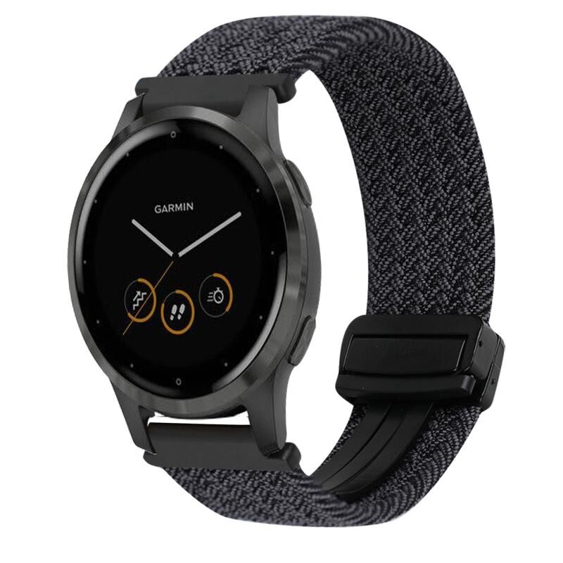 For Garmin Vivoactive 4S 18mm Magnetic Buckle Braided Watch Band(Graphite Black)