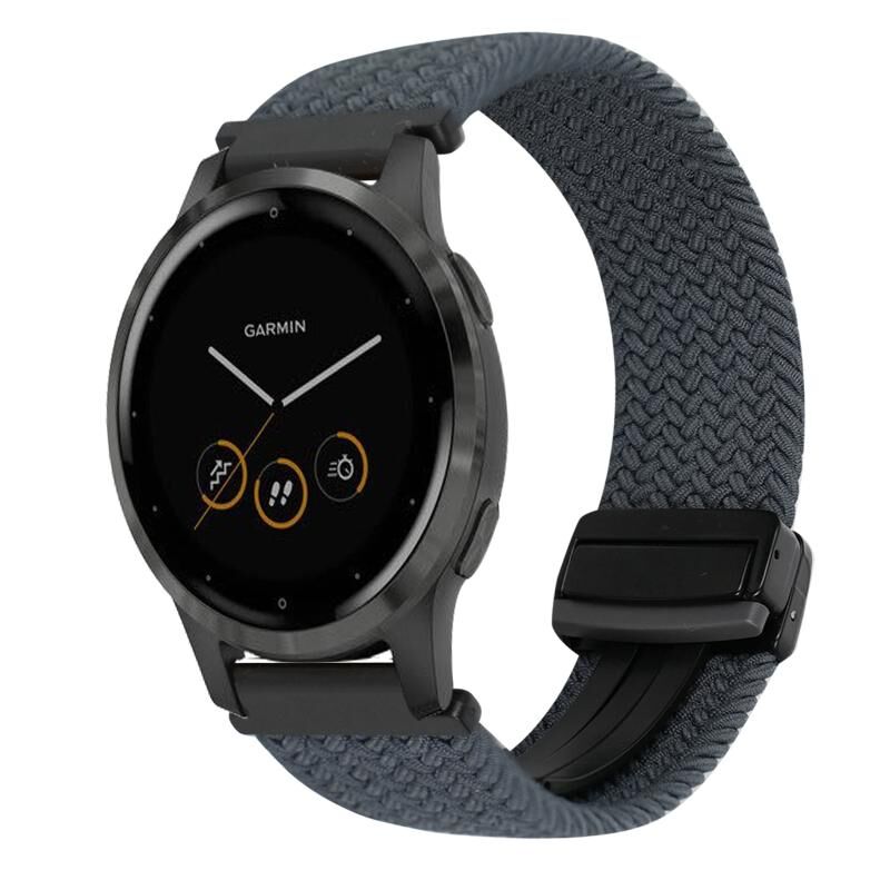 For Garmin Vivoactive 4S 18mm Magnetic Buckle Braided Watch Band(Space Gray)