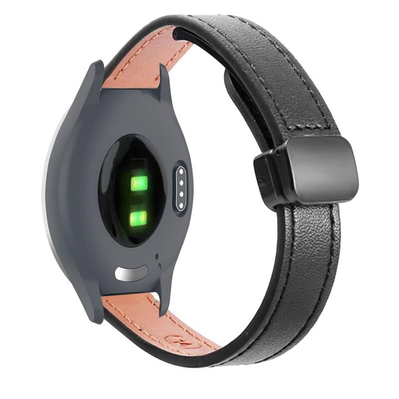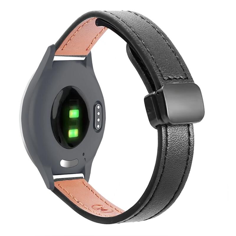 Για το Garmin Vivoactive 4S 18mm λεπτό μαγνητικό λουράκι μικροϊνών δερμάτινο λουράκι ρολογιού (μαύρο)