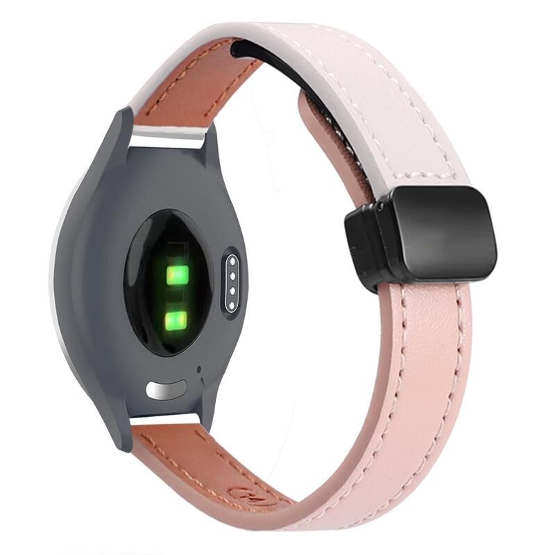 Για το Garmin Vivoactive 4S 18mm λεπτό μαγνητικό λουράκι από δερμάτινο λουράκι μικροϊνών (ροζ+απρίκο)